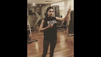 பயிற்சியாளர் துணையுடன் இரு கைகளால் மட்டும் நிற்க முயற்சி செய்யும் சமந்தா
