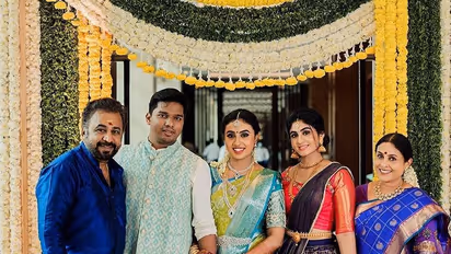 நேற்று மாலையே சென்னை மணப்பாக்கத்தில் நடைபெற்ற வரவேற்பு நிகழ்ச்சியில் முதலமைச்சர் மு.க.ஸ்டாலின், அவருடைய மனைவி துர்கா ஸ்டாலின் மற்றும் மகன் உதயநிதி ஸ்டாலினுடன் பங்கேற்றார்.