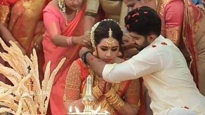 கெட்டிமேளம் கொட்ட மணமகள் கழுத்தில் தாலி கட்டிய மாப்பிள்ளை
