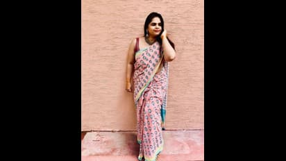காட்டன் சேலையில் இடை தெரிய போஸ் கொடுத்த வித்யுலேகா ராமன்