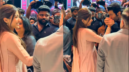 'தி கேர்ள்ஃபிரண்ட்' படத்தின் வெற்றி விழா ஹைதராபாத்தில் நடைபெற்றது, இதில் சிறப்பு விருந்தினராக கலந்துகொண்ட விஜய் தேவரகொண்டா, நடிகை ராஷ்மிகா மந்தனாவின் கையில் முத்தமிட்டிருக்கிறார்.