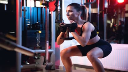 ஒரு டம்பலை உங்கள் மார்பின் முன் இரு கைகளாலும் பிடித்துக்கொள்ளுங்கள். கால்களை தோள்பட்டை அகலத்திற்கு விரித்து, உங்கள் இடுப்பை பின்னோக்கித் தள்ளி, முதுகை நேராக வைத்து, மார்பை நிமிர்த்தி நாற்காலியில் உட்காருவது போல் கீழே இறங்குங்கள். பின்னர் மெதுவாக ஆரம்ப நிலைக்குத் திரும்புங்கள். பயிற்சி செய்யவும்.