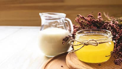 பால், நெய் ஆகிய இரண்டும் தனித்தனியாக பல்வேறு ஆரோக்கிய நன்மைகளை கொண்டுள்ளன. இது இரண்டும் சேரும்போது இன்னும் கூடுதல் நன்மைகள் கிடைக்கின்றன. பாலில் இரும்புச்சத்து, புரதச்சத்து போன்ற சத்துக்களும், கால்சியம், மெக்னீசியம், பாஸ்பரஸ், பொட்டாசியம் ஆகிய தாதுக்களும் வைட்டமின்கள் ஏ,டி, பி-6, ஈ, கே ஆகிய உயிர்ச்சத்துக்களும் உள்ளன. இதில் இருக்கும் கொழுப்பு பசு மற்றும் எருமை பாலுக்கு ஏற்றபடி மாறலாம். நெய்யில் கொழுப்பில் கரையும் வைட்டமின்கள் ஏ, டி, ஈ, கே ஆகியவை உள்ளன. நல்ல கொழுப்புகளுக்கு நெய் உண்ணலாம். இந்த பதிவில் ஏன் பாலுடன் நெய் கலந்து குடிக்க வேண்டும் என்பது குறித்து காணலாம்.