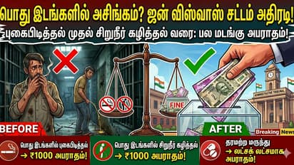 பொது இடங்களில் அசுத்தம் செய்தல்: பொது இடங்களில் சிறுநீர் கழித்தல், குப்பைகளைக் கொட்டுதல் போன்றவற்றுக்கு முன்பு இருந்த ரூ. 50 அபராதம் தற்போது ரூ. 500 ஆக உயர்த்தப்பட்டுள்ளது. ஆனால் சிறை தண்டனை கிடையாது.
