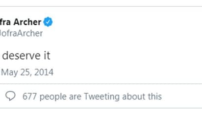 இதை மேலும் பெருங்களிப்புடையதாக மாற்ற, ஜோஃப்ரா ஆர்ச்சர் மும்பை தொடர்பான இரண்டு ட்வீட்களையும் வைத்திருக்கிறார், மேலும் அவை வைரலாகிவிட்டன. "மும்பை அதற்கு தகுதியானது" என்று அவர் மே 25, 2014 அன்று ட்வீட் செய்திருந்தார். இந்த ட்வீட் தற்போதைய மின் தடை குறித்து மும்பைக்காரர்களிடம் ஒரு நகைச்சுவையான தோண்டல் போல் தெரிகிறது. இருப்பினும், நாங்கள் இன்னும் கொஞ்சம் ஆராய்ச்சி செய்தபோது, மே 25 அன்று, மும்பை இந்தியன்ஸ் (எம்ஐ) ஐபிஎல் தகுதிச் சுற்றில் ராஜஸ்தான் ராயல்ஸ் (ஆர்ஆர்) ஐ தோற்கடித்து இறுதிப் போட்டிக்கு முன்னேறியது என்பது புரிந்தது.