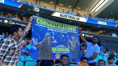 இந்த நிலையில் இந்தப் போட்டியை நேரில் பார்க்க பார்வையாளர்களாக சிட்னி மைதானத்திற்கு சென்ற அஜித் ரசிகர்கள், அஜித் மற்றும் நடராஜன் இணைந்திருக்கும் பதாகையை கையில் வைத்து, மைதானத்தை தெறிக்க வைத்தனர் . இன்னும் கொஞ்ச நேரத்துல அலப்பறை ஆரம்பம், தல மாஸை பார்ப்பீங்க என்று முன்கூட்டியே ட்விட்டரில் தல ரசிகர்கள் பதிவிட்டிருந்தனர்