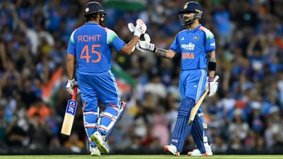 எட்டாவது ஓவரில் போஷின் பந்துவீச்சில் ரோஹித் அடுத்தடுத்து இரண்டு பவுண்டரிகளை அடித்தார். அதில் ஒன்று அவரது டிரேட்மார்க் புல் ஷாட் ஆகும். அடுத்த ஓவரில், கோலி ஓட்నీல் பார்ட்மேனின் பந்துவீச்சில் மற்றொரு சிக்ஸரை விளாசினார்.