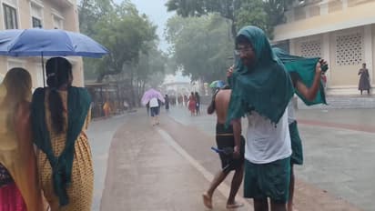 மேலும் கோவிலுக்கு வந்த பக்தர்கள் காலையில் பெய்த மழையால் ஆங்காங்கே ஒதுங்கி நின்றனர். சிலர் மழையை பொருட்டாக நினைக்காமல் அதில் நனைந்து விளையாடி மகிழ்ந்து வருகின்றனர். சில பக்தர்கள் மழையையும் பொருட்படுத்தாமல் தங்களது வேண்டுதலுக்காக கோவில் முன்பு மழையில் நனைந்தபடி முழங்கால் இட்டு வேண்டி வருகின்றனர். நேற்று இரவு முதல் பெய்த மழையால் கோவில் முன்பு கடற்கரையில் இறங்கு படிக்கட்டு பகுதியில் கடல் மண் அரிப்பு ஏற்பட்டுள்ளது.