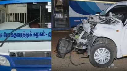 இன்று அதிகாலை திருச்சி மாவட்டம் சிறுநகனூர் தேசிய நெடுஞ்சாலையில் பழுதாகி நின்று கொண்டிருந்த அரசு பேருந்தின் மீது கார் பயங்கரமாக மோதியுள்ளது. இந்த விபத்தில் கார் அப்பளம் போல் நொறுங்கியது. இந்த விபத்தில் காரில் பயணித்த ஒன்றரை வயது குழந்தை அனோனியா, யசோதா, விஜயபாபு ஆகியோர் சம்பவ இடத்திலேயே உடல் நசுங்கி ரத்த வெள்ளத்தில் துடிதுடித்து உயிரிழந்தனர்.