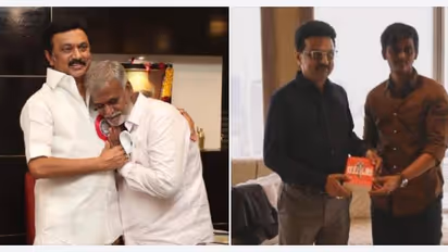முதல்வர் ஸ்டாலினின் நம்பிக்கைக்குரிய அமைச்சராக உயர்ந்தவர் பி.கே.சேகர்பாபு. சமீபத்தில் லண்டன் சென்ற முதல்வர் ஸ்டாலினை, அங்கு படித்து வரும் சேகர்பாபுவின் மகன் ஜெயசிம்மன் சந்தித்து புத்தகம் பரிசளித்தார்.