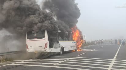 Bus Fire Accident: கிருஷ்ணகிரி மாவட்டம் ஊத்தங்கரை அருகே, 23 தொழிலாளர்களுடன் சென்ற தனியார் ஷூ கம்பெனி பேருந்து, இருசக்கர வாகனத்துடன் மோதியதில் தீப்பிடித்து எரிந்தது. இந்த விபத்தில் பேருந்தில் இருந்த அனைவரும் அதிர்ஷ்டவசமாக உயிர் தப்பினர்.