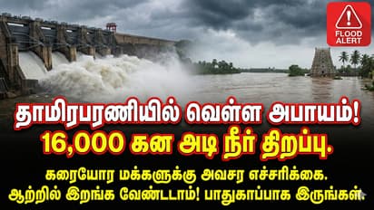 Thamirabarani Flood Alert தாமிரபரணியில் 16,000 கன அடி நீர் திறப்பு. நெல்லை மக்களுக்கு வெள்ள அபாய எச்சரிக்கை. ஆற்றில் இறங்கத் தடை. பாதுகாப்பாக இருக்க அறிவுறுத்தல்.