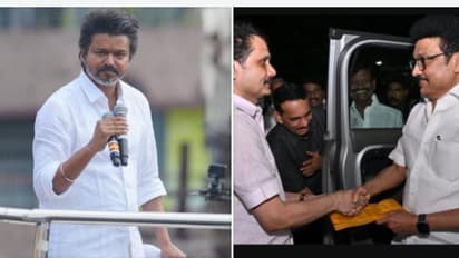 (கூட்டத்தில் தண்ணீர் கேட்ட மக்களுக்கு வாகனத்தில் இருந்தபடியே தண்ணீர் வழங்கிய விஜய்) (( கூட்டத்தில் மயங்கிய ஒருவரை ஆம்புலன்ஸ் ஏற்ற அறிவுரை))