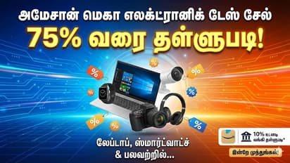 Amazon அமேசான் தளத்தில் 'மெகா எலக்ட்ரானிக் டேஸ் சேல்' துவங்கியுள்ளது. லேப்டாப், ஸ்மார்ட்வாட்ச், கேமரா மற்றும் பிற கேட்ஜெட்களுக்கு 75 சதவீதம் வரை மாபெரும் தள்ளுபடி! வங்கி சலுகைகள் மற்றும் முழு விவரங்களை இங்கே படியுங்கள்.