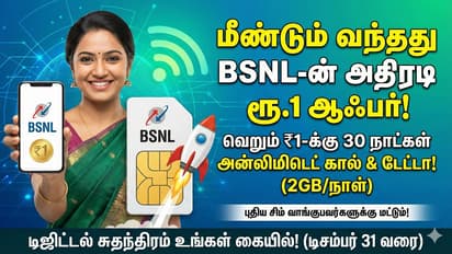BSNL வாடிக்கையாளர்களின் கோரிக்கையை ஏற்று BSNL மீண்டும் ரூ.1 Freedom Plan-ஐ அறிமுகப்படுத்தியுள்ளது. புதிய சிம் வாங்குபவர்களுக்கு 30 நாட்கள் அன்லிமிடெட் கால் மற்றும் டேட்டா இலவசம். முழு விவரம் இதோ.