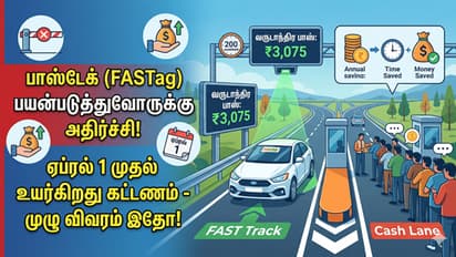 தற்போது வரை பாஸ்டேக் வருடாந்திர பாஸ் பெறுவதற்கு ரூ. 3,000 வசூலிக்கப்பட்டு வந்தது. புதிய மாற்றத்தின்படி, இந்த கட்டணம் ரூ. 3,075-ஆக உயர்த்தப்பட்டுள்ளது. இந்த ரூ. 75 உயர்வு என்பது பெரிய தொகையாகத் தெரியவில்லை என்றாலும், அடிக்கடி நெடுஞ்சாலைகளில் பயணம் செய்வோர் புதிய நிதியாண்டு தொடங்குவதற்கு முன்பே இந்த மாற்றத்தைக் கவனிப்பது அவசியமாகும்.