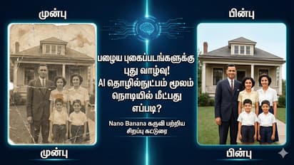 • படம் தெளிவாகத் தெரிய: "Restore this old photo, remove scratches and improve clarity." (இந்த பழைய படத்தை சரிசெய்து, கீறல்களை நீக்கித் தெளிவாக்கு).