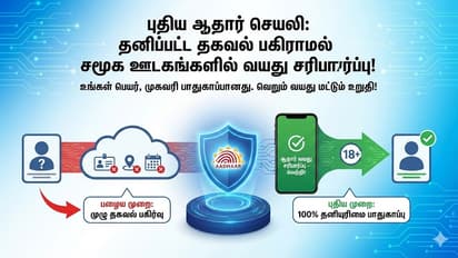 New Aadhaar சமூக வலைத்தளங்களில் பாதுகாப்பாக வயதை உறுதிசெய்ய புதிய ஆதார் செயலியை அறிமுகப்படுத்தியது UIDAI. தனிப்பட்ட தகவல்களைப் பகிராமலேயே வயதைச் சரிபார்க்கலாம்.
