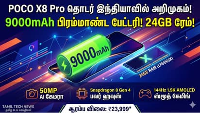 POCO X8 Pro போக்கோ X8 Pro விரைவில் அறிமுகம்! 9000mAh பேட்டரி மற்றும் சூப்பர் ஃபாஸ்ட் சார்ஜிங். முழு விவரங்கள் மற்றும் விலை இதோ. 5 நாட்களுக்கு சார்ஜ் நிக்கும் புது போக்கோ X8 Pro!