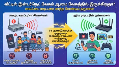 இன்றைய டிஜிட்டல் உலகில் வீட்டில் வைஃபை (Wi-Fi) என்பது அத்தியாவசியமான ஒன்றாக மாறிவிட்டது. பல நேரங்களில் நாம் விலையுயர்ந்த அதிவேக இன்டர்நெட் பிளான்களை வைத்திருப்போம், ஆனால் வீடியோக்கள் பஃபரிங் ஆகும்போதும் அல்லது அடிக்கடி கனெக்ஷன் கட் ஆகும்போதும் எரிச்சலடைவோம். இதற்கு உங்கள் இன்டர்நெட் சேவை வழங்குநர் (ISP) மட்டும் காரணமல்ல, உங்கள் வீட்டில் உள்ள பழைய வைஃபை ரவுட்டரும் முக்கிய காரணமாக இருக்கலாம்.