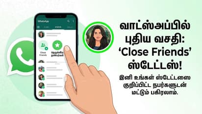 WhatsApp இன்ஸ்டாகிராம் போலவே வாட்ஸ்அப்பிலும் 'Close Friends' ஸ்டேட்டஸ் வசதி விரைவில் அறிமுகமாக உள்ளது. குறிப்பிட்ட நபர்களுக்கு மட்டும் ஸ்டேட்டஸ் வைப்பது எப்படி? முழு விவரம்.