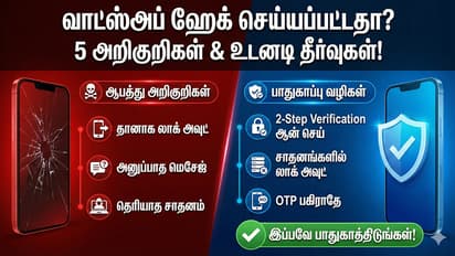 இந்தியாவில் அதிகம் பயன்படுத்தப்படும் செயலியாக வாட்ஸ்அப் உள்ளது. தனிப்பட்ட மெசேஜ்கள் முதல் வங்கி பரிவர்த்தனைகள் (WhatsApp Pay) வரை அனைத்தும் இதில் நடைபெறுவதால், இது ஹேக் செய்யப்பட்டால் பெரிய ஆபத்து காத்திருக்கிறது. உங்கள் வாட்ஸ்அப் கணக்கு வித்தியாசமாகச் செயல்படுவதை உணர்ந்தால், அதை அலட்சியப்படுத்தாதீர்கள். யாரோ உங்கள் கணக்கை ரகசியமாகக் கண்காணிக்க வாய்ப்புள்ளது.