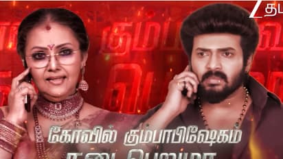 அதன் பிறகு அனைவரும் கோயிலுக்கு புறப்பட்டு வந்தனர். இந்த நிலையில் தான் கும்பாபிஷேகத்தை முன்னிட்டு சிறப்பு நிகழ்ச்சியாக கும்பாபிஷேக எபிசோடு இன்று மாலை 5 மணிக்கு ஜீ தமிழில் ஒளிபரப்பாகிறது. இதில் கும்பாபிஷெகத்தை நிறுத்த சந்திரகலா, சிவனாண்டி மற்றும் காளியம்மாள் ஆகியோர் கோயிலில் வெடி குண்டு வைத்தனர். அதுமட்டுமின்றி ரேவதியை கடத்தி சென்றுவிடுகின்றனர். அப்போது தான் புதிய அறிமுகமாக பிரபல நடிகையான கௌசல்யா எண்ட்ரி கொடுக்கிறார்.