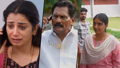 மறுபுறம் ஆதி குணசேகரன் உடன் வெளியே சென்றிருந்த அன்புக்கரசி மீண்டும் வீட்டுக்கு வந்த நிலையில், அவரை வாசலிலேயே தடுத்து நிறுத்தும் தர்ஷினி, உனக்கு பைனல் வார்னிங் கொடுக்குறேன். மரியாதையா நீயே இங்க இருந்து ஓடிரு, இல்லேனா பெரிய பிரச்சனை ஆகிடும் என சொல்ல, அதற்கு அன்புக்கரசி, பிரச்சனையை நீ இனிமே தான் பண்ணுவேன்னு சொல்ற, ஆனா நான் பொறந்ததுல இருந்தே பிரச்சனையோட தான் வாழ்ந்துட்டு இருக்கேன் என பதிலடி கொடுக்கிறார். அதனால இதுக்காகலாம் பயந்து என்னால ஓட முடியாது. உன்னால முடிஞ்சத நீ பாத்துக்கோ என சவால்விடும்படி பேசிவிட்டு வீட்டுக்குள் செல்கிறார்.