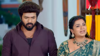 கார்த்திக்கும் வேறு வழியில்லாமல் தான் யார் என்ற உண்மையை சொல்லிவிட்டார். இதைக் கேட்டு அதிர்ச்சி அடைந்த சாமுண்டீஸ்வரி ஆத்திரத்தில் தலையில் தண்ணீரை ஊற்றி இனிமேல் இந்த ஊருக்கும், இந்த குடும்பத்திற்கும் தனக்கும் எந்த சம்பந்தமும் இல்லை என்று கூறினார். மேலும், தாலியை வைத்து பிளாக்மெயில் செய்து கணவரையும், மகள்களையும் அங்கிருந்து கூட்டிக் கொண்டு சென்றார். ரேவதி வர முடியாது என்று சொல்லியும் அவரை கட்டாயப்படுத்தி கூட்டிச் சென்றார்.