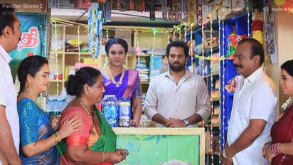 ஆனால், சரவணன் மற்றும் பாண்டியன் இருவரும் கோபமாக அங்கிருந்து புறப்பட்டுச் சென்றனர். இதைத் தொடர்ந்து காந்திமதி மற்றும் சுகன்யா, பழனிவேல் ஆகியோர் குத்துவிளக்கு ஏற்றி வைத்து கடையை திறந்தனர். காந்திமதி சர்க்கரையும் மஞ்சளும் வாங்கி வியாபாரத்தை தொடங்கி வைத்தார். பிறகு குமரவேல் இனிப்பு வாங்கினார். அதன் பின்னர் தான் முத்துவேல் 500 ரூபாய் நோட்டு கட்டை பழனிவேலுவிடம் கொடுத்தார். ஆனால், அவர் பெற்றுக் கொள்ளவில்லை.