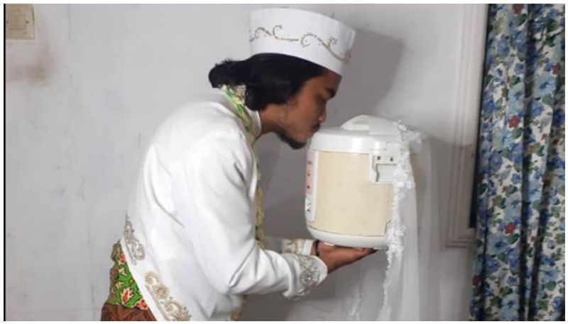 அந்த மனிதர் கல்யாணம் பண்ணியது பெண்ணை அல்ல… ஒரு ரைஸ் குக்கரை… இந்தோனேசியாவில் கொய்ரூல் அனம் என்ற இளைஞர் இப்படி செய்து அனைவரையும் வியக்க வைத்திருக்கிறார். கிட்டத்தட்ட 2 வாரங்கள் முன்பாக அவர் ரைஸ் குக்கரை திருமணம் செய்து கொண்டு இருக்கிறார்.