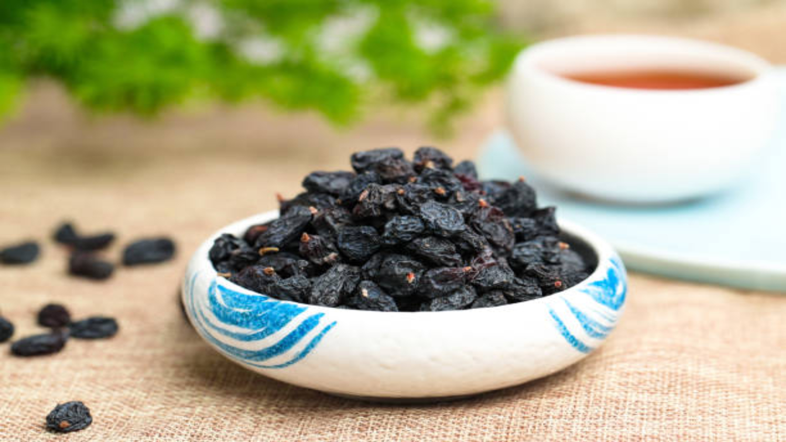 கரும் திராட்சையில் இரும்புச்சத்து, பொட்டாசியம், மெக்னீசியம், கால்சியம், வைட்டமின் பி காம்ப்ளக்ஸ், நார்ச்சத்து மற்றும் சக்திவாய்ந்த ஆன்டிஆக்ஸிடன்ட்கள் நிறைந்துள்ளன.