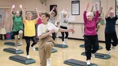 ** ஏரோபிக்ஸ் பயிற்சிக்கு நன்றாக பழக்கப்பட்டவர்கள் பின் வரிசைகளில் குழுவோடு சேர்ந்து பயிற்சி செய்வதில் தவறில்லை.