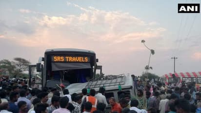 ஆந்திரா மாநிலம், கர்னூல் மாவட்டம் வேல்துருத்தி என்ற இடத்தில் தனியார் நிறுவன ஆம்னி பேருந்து வேகமாக சென்று கொண்டிருந்தது. அப்போது எதிரே வந்து வேன் மின்னல் வேகத்தில் மோதி விபத்திற்குள்ளானது.
