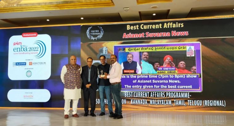 2022ஆம் ஆண்டு நடைபெற்ற ENBA விருது விழாவில் ஏசியாநெட் சுவர்ணா நியூஸ் 4 விருதுகளை வென்றிருந்தது. செய்தி தொகுப்பாளரான ஜெயபிரகாஷ் ஷெட்டி சிறந்த தொகுப்பாளர் தங்கம் வென்றார். சிறந்த நடப்பு நிகழ்வுகள் பிரிவு, சிறந்த செய்தி பிரிவு ஆகியவற்றிலும் தங்கம் கிடைத்தது. சுவர்ணா நியூஸ் கவர் ஸ்டோரிக்காக வெள்ளி கிடைத்தது.