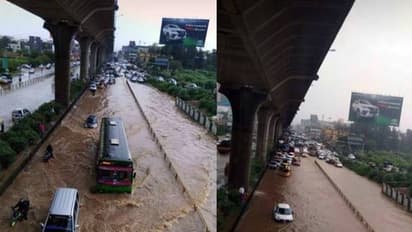 பெங்களூரில் பெய்த கனத்த மழையால், நகரில் பல இடங்களில் வெள்ளம் பெருக்கெடுத்து ஓடியது. இதனால் சாலைகளில் போக்குவரத்து முடங்கியது.