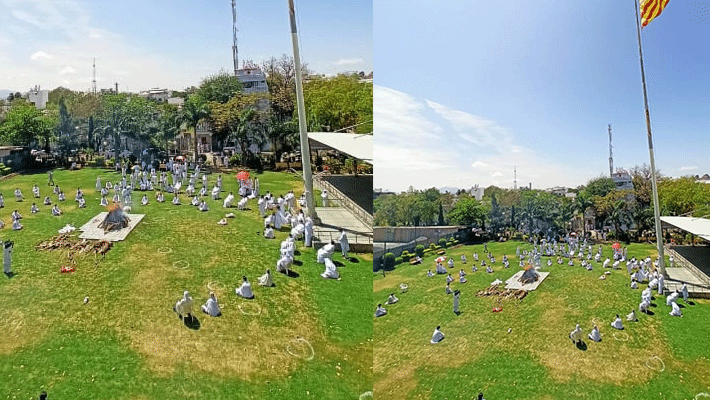 பிரஜாபிதா பிரம்மா குமாரிகள் இயக்கத்தின் தலைமை நிர்வாகி தாதி ஜானகி (104) வயது மூப்பு காரணமாக இன்று அதிகாலை உயிரிழந்தார். இதனையடுத்து, ஊரடங்கு உத்தரவு அமலில் உள்ளதால் ஒரு மீட்டர் இடைவெளியில் பிரம்ம குமாரிகள் அமைப்பினர் அமர்ந்து அவரது உடலுக்கு தீ வைத்து தகனம் செய்தனர்.