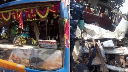 மத்தியபிரதேசத்தில் பள்ளி வேன் மீது பேருந்து நேருக்கு நேர் மோதி விபத்துக்குள்ளானது. இந்த விபத்தில் வேன் ஓட்டுநர் உட்பட 7 குழந்தைகள் சம்பவ இடத்திலேயே பரிதாபமாக உயிரிழந்தன.