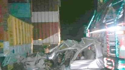 மத்திய பிரதேசம் அருகே கார் மீது மீது மோதி விபத்துக்குள்ளானது. இந்த விபத்தில் ஒரே குடும்பத்தைச் சேர்ந்த 7 பேர் உடல் நசுங்கி சம்பவ இடத்திலேயே உயிரிழந்தனர்.