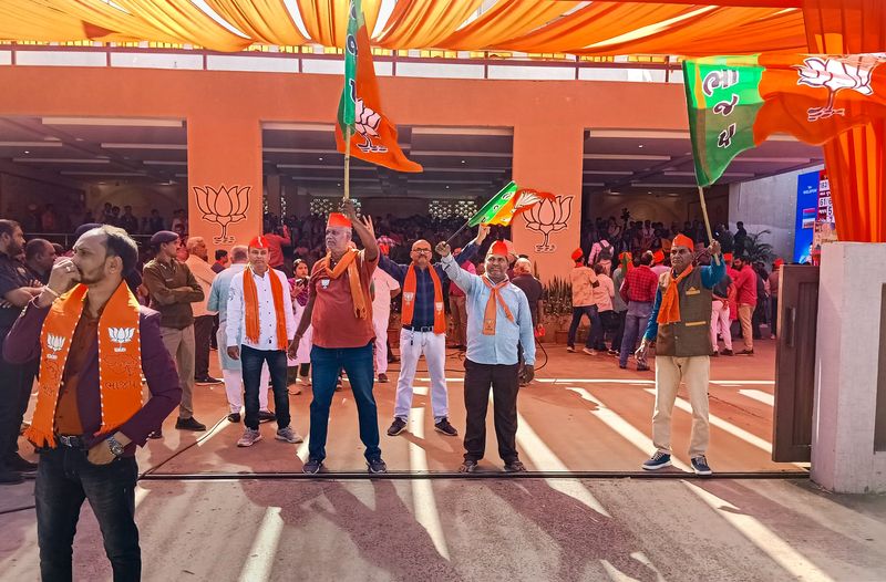குஜராத் தேர்தல் முடிவு: கம்யூனிஸ்ட்டுக்கு அடுத்து பாஜக! கொண்டாட்டம் ஆரம்பம்