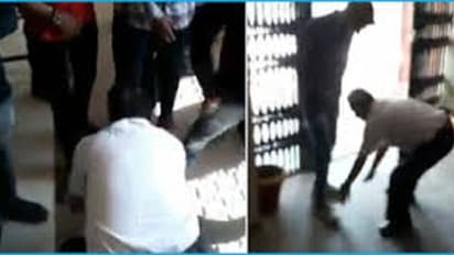 மத்தியப்பிரதேச மாநிலம் மண்ட்சார் என்ற இடத்தில் ராஜீவ்காந்தி பட்டமேற்படிப்பு கல்லூரி உள்ளது. இங்கு தினேஷ் சந்திரகுப்தா என்ற பேராசிரியர் பணியாற்றி வருகிறார். இவரைத்தான், அகில பாரத வித்யார்த்தி பரிசத் (ஏபிவிபி) அமைப்பைச்சேர்ந்தவர்கள் மிரட்டி காலில் விழ வைத்துள்ளனர்.