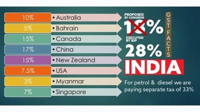 உலக நாடுகளில் சராசரியாக 10 சதவீதத்துக்கு உள்ளாக ஜி.எஸ்.டி. வரி இருக்கும்நிலையில், நம் நாட்டில் அதிகபட்சமாக 28 சதவீதம் வரை பிரதமர் மோடி தலைமையிலான அரசு விதித்துள்ளது.
