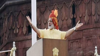 6. செங்கோட்டையில் உள்ள தேசியக் கொடியின் கம்பம் அமைக்கப்பட்ட பகுதிக்கு சரியாக 7.30 மணிக்கு நடந்து சென்ற மோடி, தேசியக் கொடியை ஏற்றினார்.