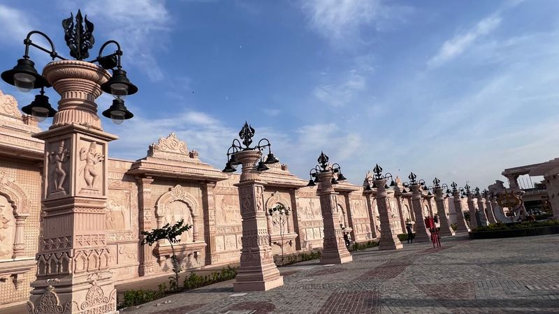 அழகாக வடிவமைக்கப்பட்ட சுண்ணாம்புக் கற்களால் 108 தூண்கள், நடைபாதையில் வைக்கப்பட்டுள்ளன, நடைபாதைகள் அழகான நீர் ஊற்றுகள், சிவபுராணத்தை கூறும் சிலைகள் அமைக்கப்பட்டுள்ளன.