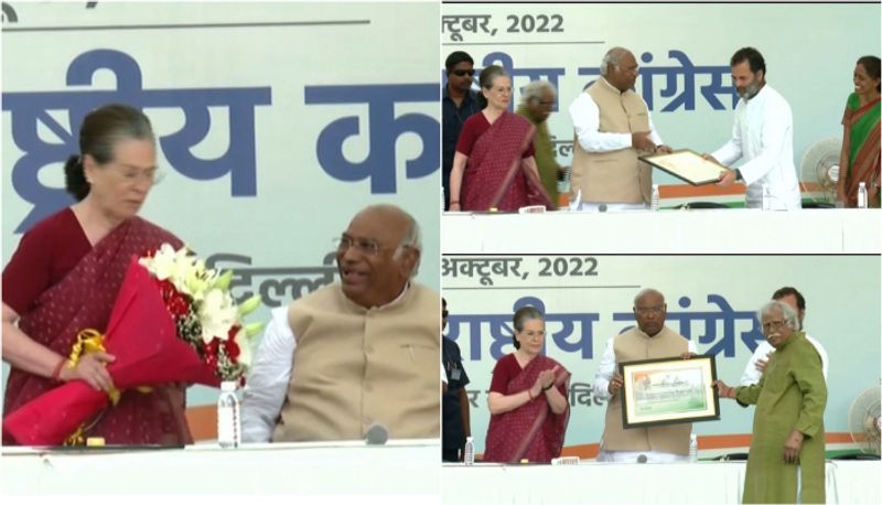 காங்கிரஸ் தலைமை அலுவலகத்தில் நடந்த பதவி ஏற்பு விழாவில் சோனியா காந்தி, முன்னாள் தலைவர் ராகுல் காந்தி, பொதுச்செயலாளர் பிரியங்கா காந்தி உள்ளிட் மூத்த தலைவர்கள் பலர் பங்கேற்றனர்.
