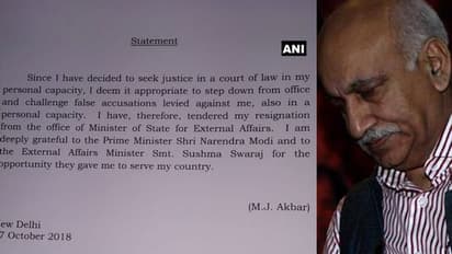 மத்திய வெளியுறவுத் துறையின் துணை அமைச்சர் அக்பர், தனது பதவியை ராஜினாமா செய்துள்ளார். பதவி விலகிய பின் தன் மீதான பாலியல் புகாரை எதிர்கொள்வதாக அவர் தெரிவித்துள்ளார். ''மீடூ'' ஹேஷ்டேக் மூலம் மத்திய அமைச்சர் ஒருவர் பதவி விலகுவது இந்தியாவில் இதுவே முதல்முறை.