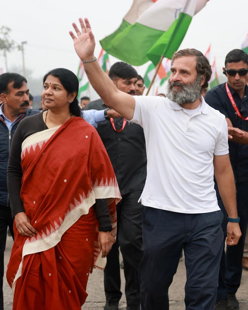 குருகிராமில் உள்ள சோனாவில் உள்ள கேர்லி லாலா பகுதியில் இருந்து இன்று காலை ராகுல் காந்தியின் யாத்திரை தொடர்ந்தது. ராகுல் காந்தியுடன் திமுக எம்.பி.கனிமொழியும் இன்று நடைபயணத்தில் பங்கேற்றார்.