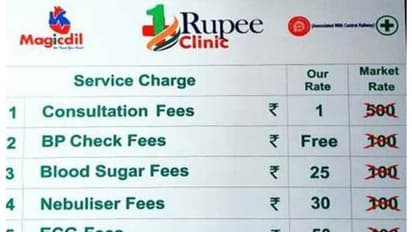 இந்த கிளினிக்குகளில் , டாக்டரின் கட்டணமாக ரூ.1 மட்டுமே வசூலிக்கப்படும். ரத்த அழுத்த பரிசோதனை இலவசமாக செய்வதுடன், சர்க்கரை பரிசோதனைக்கு ரூ.25 வசூலிக்கப்படும். இ.சி.ஜி. ரூ.50-ல் எடுக்கலாம் என அறிவிக்கப்பட்டுள்ளது.