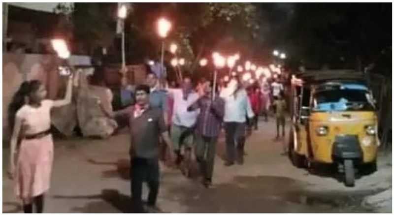 சமூக விலகலை கடைபிடிக்காமல் கையில் விளக்குகளுடன் வீதிகளில் ஊர்வலமாக வந்தவர்களின் வீடியோவும் புகைப்படமும் சமூக ஊடகங்களில் வைரலாகிவருகின்றன.