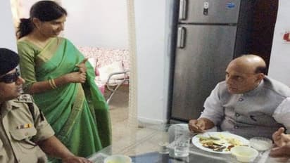 அசாம் உல்பா தீவிரவாதிகளால் இரு கண்களையும் இழந்த எல்லைப் பாதுகாப்பு படை வீரர் சந்தீப் மிஸ்ரா வீட்டுக்கு திடீரென சென்ற மத்திய உள்துறை ராஜ்நாத் சிங், அவர்களுடன் சேர்ந்து உணவு சாப்பிட்டார்.